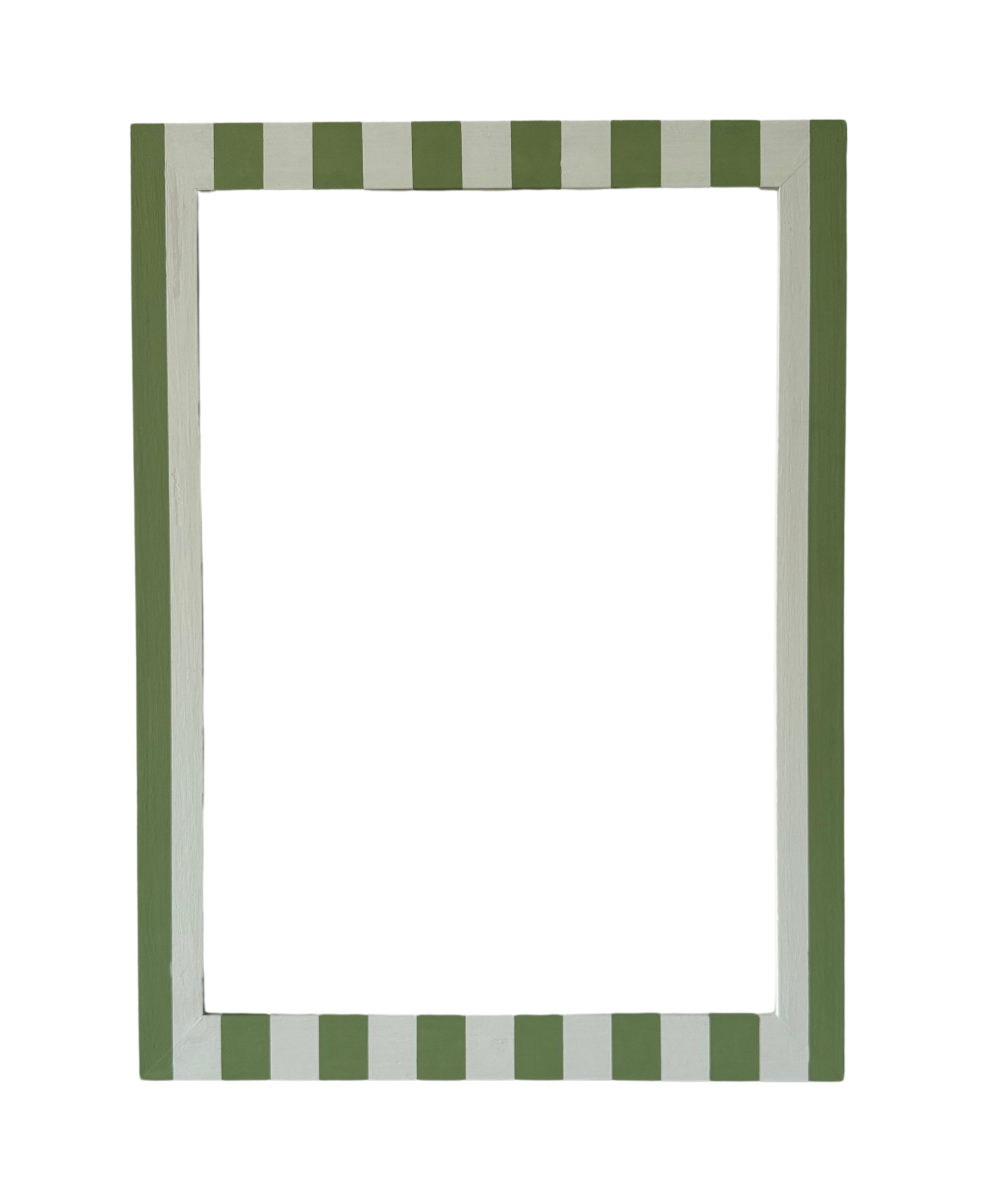 Hand-painted solid wood picture frame in powder blue and apple green stripes.