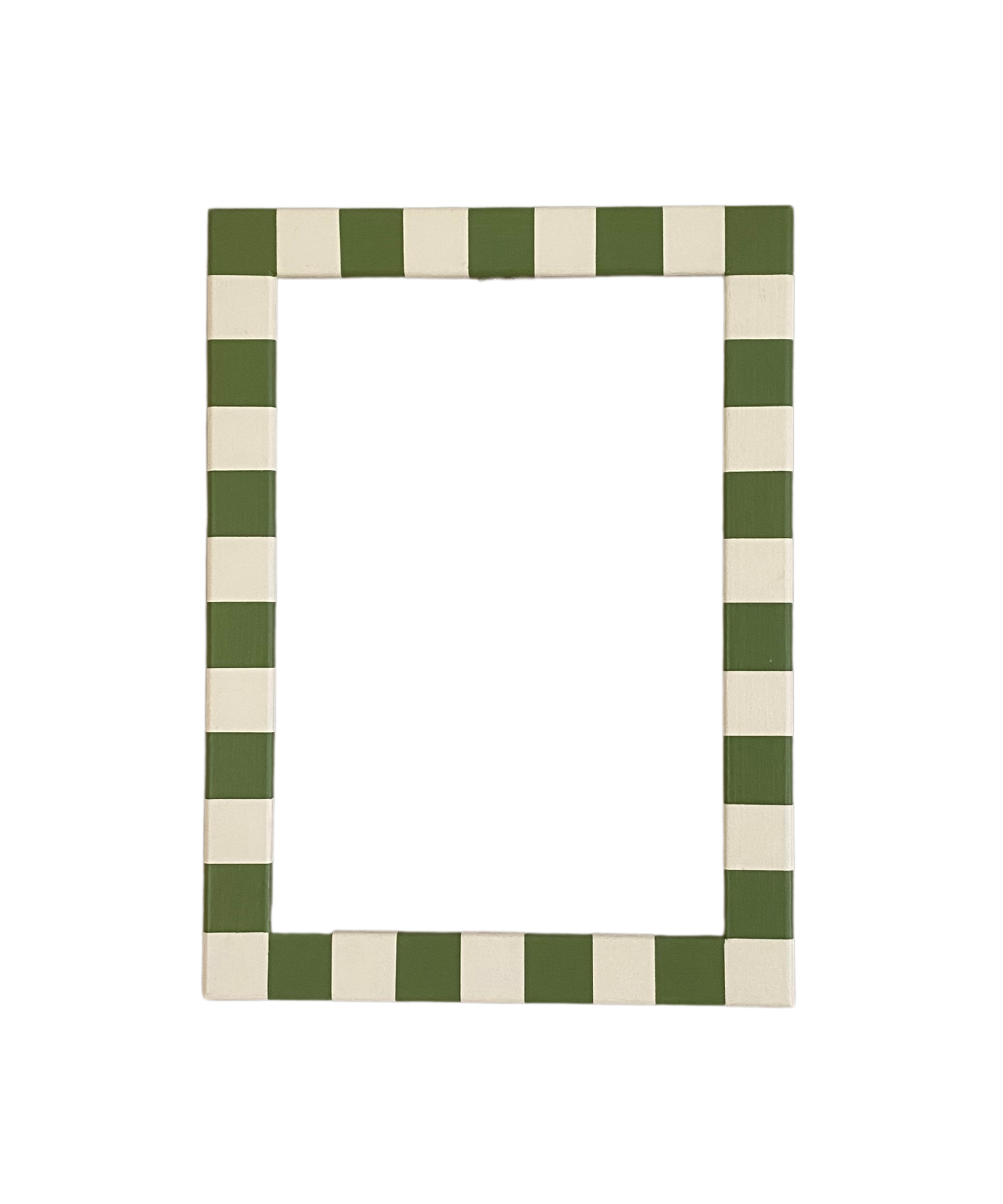 Hand-painted solid wood picture frame in ivory and apple green skinny stripes.