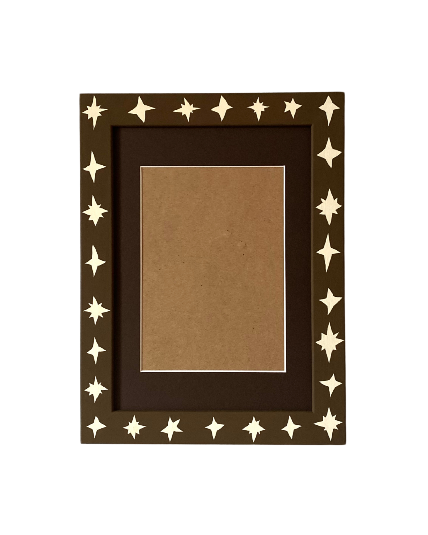 Hand-painted solid wood picture frame in chocolate brown with cream wonky stars.