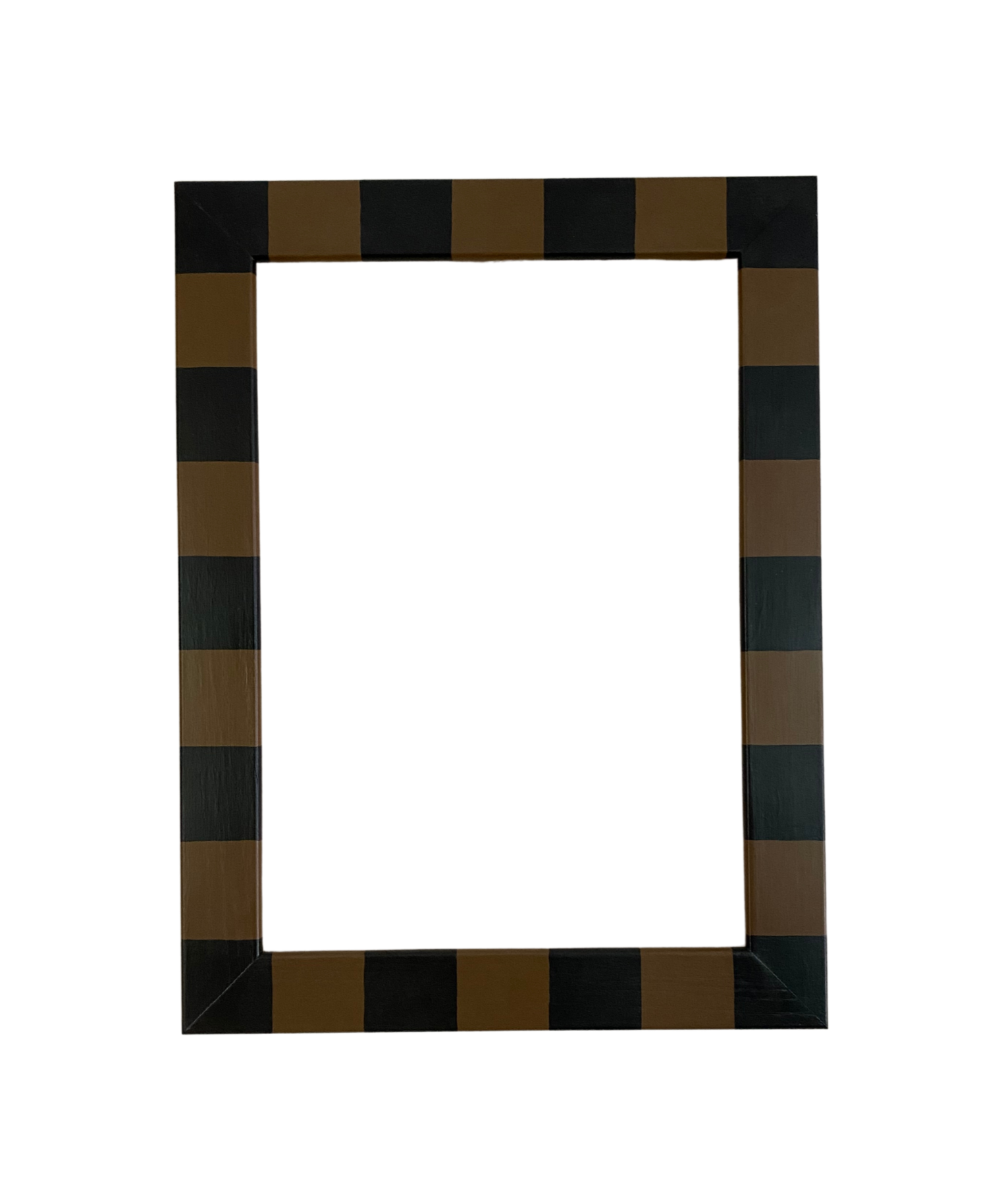 Hand-painted solid wood picture frame in chocolate brown and black stripes.