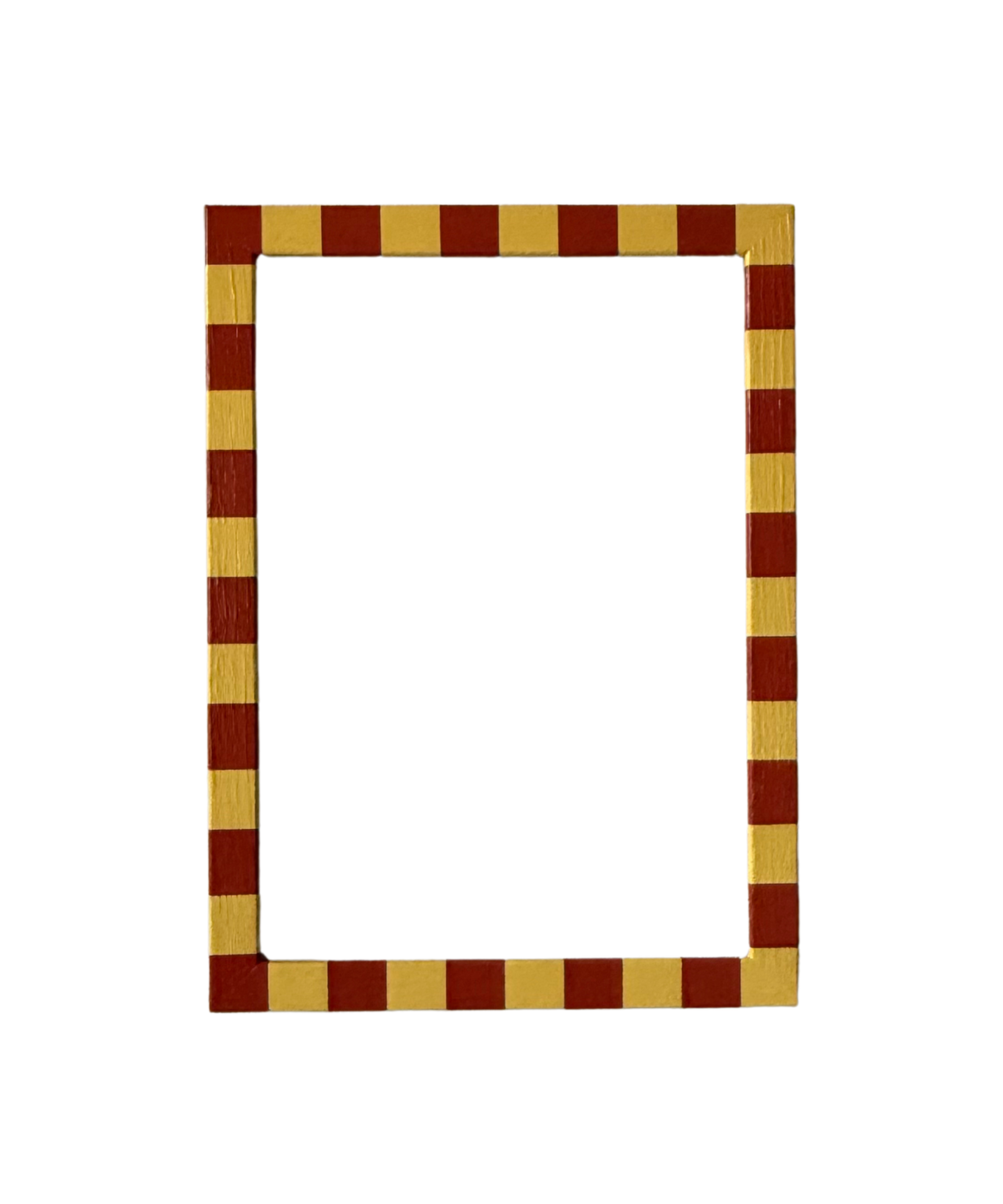Hand-painted solid wood picture frame in sunshine yellow and terracotta skinny stripes.